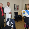 Hans Küster, erster Vorsitzender der Bürgerhilfe Gerresheim, und Dr. Martin Neukirchen von der Palliativstation der Düsseldorfer Universitätsklinik waren völlig überrascht und sprachlos, als Ihnen das Grafenpaar Quad, Rolf I. und Gräfin Eva, im bürgerlichen Leben Rolf Müller und Eva Hlouschek, am Montag, dem 26. Februar 2018 in der Uniklinik einen nie erwarteten hohen vierstelligen Scheck auf der Krankenstation symbolisch kurz nach der Karnevalssession überreichte, der zu gleichen Teilen an Bürgerhilfe Gerresheim und Palliativstation geht. Gräfin Eva machte es sehr spannend und geheimnisvoll, damit alle die verdutzten Gesichter der Beschenkten sehen konnten. Unter Anwesenheit von Alexander Gerritzen und Wolfgang Seifert von der Gerresheimer Bürgerwehr sowie Annika Butzen und Dr. Joachim Mohme vom Pharmakonzern Roeser wurde der Scheck überreicht. Auch die kurz hinzugekommene Christa Stillger, Chefin der Pflege auf der Palliativstation, kam aus dem Strahlen nicht mehr heraus, als sie die vierstellige Karnevalszahl mit den gleichen Ziffern hinter dem Komma sah, wie die Bilder vermitteln.