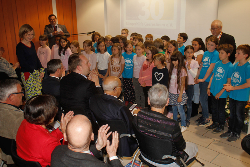 Für 30 Jahre ehrenamtliche, erfolgreiches Engagement, um den Menschen, denen es nicht so gut geht, ihr Leben zu erleichtern, bekamen Hans Küster und seine Mitstreiter der Bürgerhilfe Lob, Anerkennung und Wertschätzung. Thomas Geisel gratulierte herzlich und nannte die Bürgerhilfe die Mutter aller Bürgervereine, die über Parteigrenzen hinweg die Menschen für den guten Zweck zusammenführe. Er wünschte sich, dass so eine Jubiläumsfeier auch den Nachwuchs anspornen könne um das "großartige Werk des Vereins fortzusetzen". Bundestagsabgeordneter Thomas Jarzombek betonte in einer Videobotschaft die Vielfältigkeit des Engagements, der Landtagsabgeordnete Marco Schmitz schob die engagierten Mitglieder der zweiten und dritten Reihe in den Vordergrund und der Schirmherr der Bürgerhilfe Anisur Rahman beleuchtete den Wert der Bildung für Kinder, die die Bürgerhilfe fördere, für Wohlstand und Frieden. Im Mittelpunkt aller Grußworte stand der Mensch Hans Küster, der es seit 30 Jahren schafft, konkrete Hilfe für Menschen zu mobilisieren und Mitstreiter nicht nur zu gewinnen, sondern unweigerlich für die gute Sache zu verpflichten.