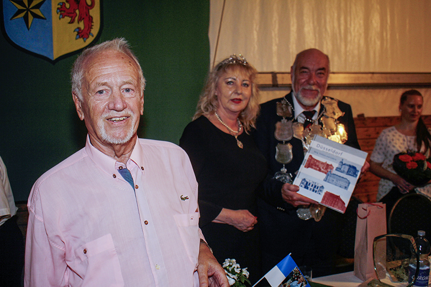 Zur ihrer Krönung schenkte Hans Küster, Chef der Bürgerhilfe Gerresheim, dem Gerresheimer Schützenkönigspaar Wolf Büsse und Iris Becker einen schönen Bildband über Düsseldorfs Schlösser und Burgen."