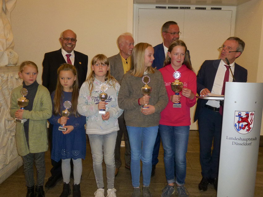 Am Donnerstag, dem 31.10.2019 fand durch Oberbürgermeister Thomas Geisel die fast schon traditionelle Siegerehrung des Radschlägerturniers der Bürgerhilfe Gerresheim im Jan-Wellem-Saal des Düsseldorfer Rathauses statt. Unser Oberbürgermeister würdigte zunächst das Engagement der Bürgerhilfe Gerresheim und berichtete unter anderem auch darüber, wie die Tradition des Radschlagens in seiner Familie fortgeführt wird. Hans Küster, der erste Vorsitzende der Bürgerhilfe Gerresheim, bedankte sich für die Einladung ins Rathaus und lud den Oberbürgermeister zu eine der nächsten Einkleidungsaktionen ein. Anisur Rahman, der Schirmherr der Bürgerhilfe Gerresheim, der jedem Kindern zur Einkleidungsaktion immer eine Tafel Schokolade mitbringt , erzählte in seiner Rede, wie wichtig ihm die Kinder für eine friedvollere Welt sind.