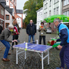 Oberbürgermeister Thomas Geisel, Bezirksbürgermeister Karsten Kunert, sein Stellvertreter Hanno Bremer, Ratsfrau Angelika Penack-Bielor und Ratsherr Rolf Buschhausen, Politiker aus allen Parteien und viele prominente Geschäftsleute spielten Tischtennis. Helma Wassenhoven von der Stadt und viele Anwesende hatten ihre Freude allein schon beim Zuschauen, nicht zuletzt Andreas Preuß, der Manager von Borussia Düsseldorf, und Hans Küster, 1. Vorsitzender der Bürgerhilfe Gerresheim. Auch Petrus hatte Einsehen, denn es klärte gegen Mittag etwas auf, zur Freude vieler Geschäftsleute, die man vor ihren Geschäften auf der Benderstraße oft genug Tischtennis spielen sah. Dank gilt Johannes Fechner, der einige Aktivitäten im Bild festgehalten hatte, den vielen Helfern und nicht zuletzt Borussia Düsseldorf, weil der Verein zahlreiche Tischtennisplatten trotz ungewissem Wetter zur Verfügung stellte. Ganz besonderer Dank gilt natürlich den Spitzenspielern und den vielen unerkannten aktiven Talenten, die Spaß hatten und für den guten Zweck spielten oder sammelten.
